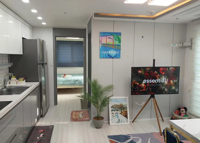 The kitchen amenities feature an electric kettle, a fridge, and glassware, provided in a dining area. This Seoul property is a short way from café Starbucks Hwagokdong. The property is within 10 minutes' walk of Hwagok underground station and just a few steps from Sinhwa Middle School bus stop.